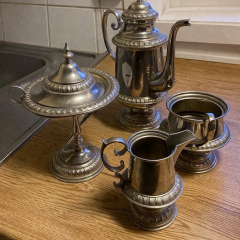 Serverings-/kaffeservis i nysilver – 5 delar