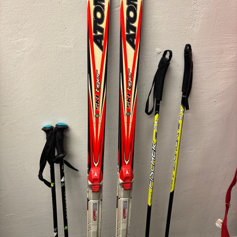 Bästa julklappen till ett barn: längdskidor! Skidorna är 140 cm långa.