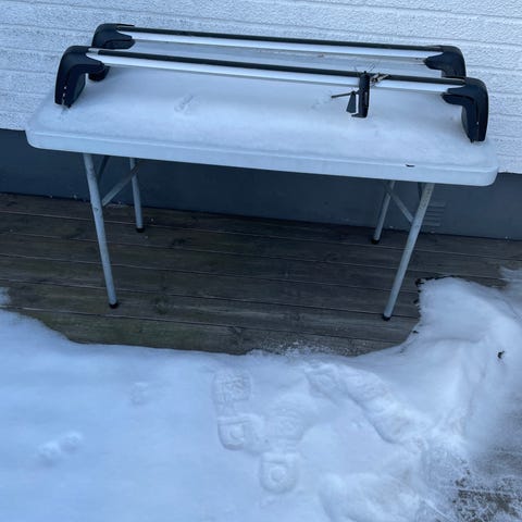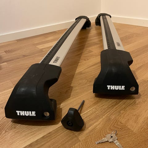 BMW takräcke i aluminium med svarta ändar. Passar för att transportera extra bagage eller utrustning på bilens tak naturligtvis även takbox. Till räcket finns två nycklar. Har suttit på en BMW 320 typ den som visas på bilden.