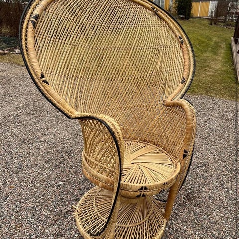 Vacker Peacock korgstol - den är perfekt att ha som dekorativ möbel eller extrastol i till exempel hall eller kök. Några mindre märken