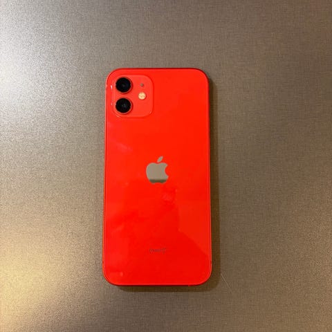 Apple iPhone 12 mobiltelefon med 64 GB lagringsutrymme i röd färg. Telefonen är i mycket bra skick. Ett transparent skal med MagSafe-funktion följer med.