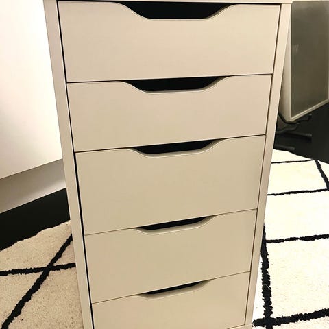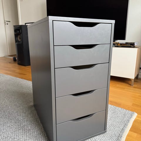 Säljer en IKEA ALEX hurts med 4 lådor, stabil och praktisk för förvaring.