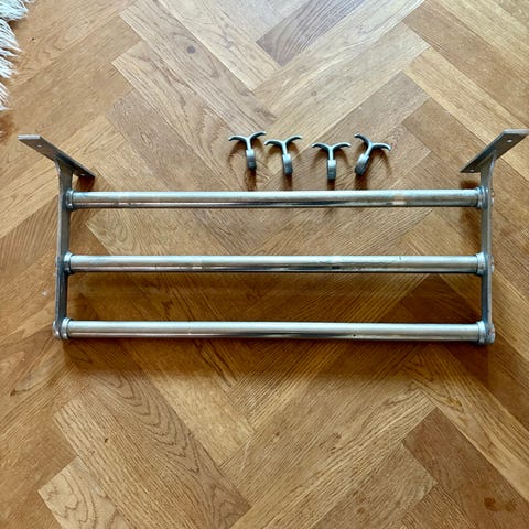 Säljer två Essen Design Classic hatthyllor. Priser för båda hyllorna. Okej skick, saknas ett beslag på ena hyllan