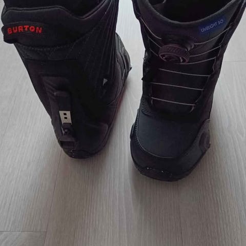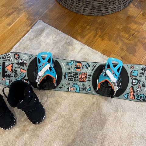Snowboard Burton 140 cm inklusive ”klick” sko och step on bindningar.