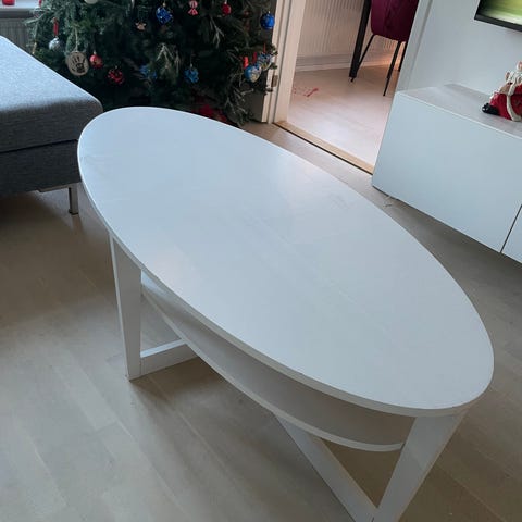 Stabilt och lättplacerat i vardagsrum. Normalt bruksslitage/små märken finns (se bilder), men överlag fint skick.