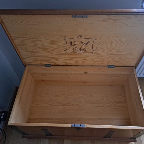 En antik kista med signaturer och skrivelser från personerna som använde den 1925