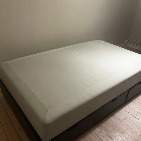 I en av bottnarna har vi bytt en bräda som har gått av, men det syns ju inte under madrassen.