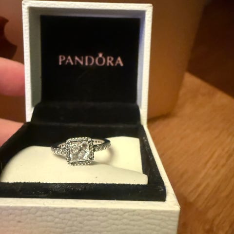 Ringen har en dekorativ design med en fyrkantig sten(kubik Zirkon)och mindre detaljer runt omkring.