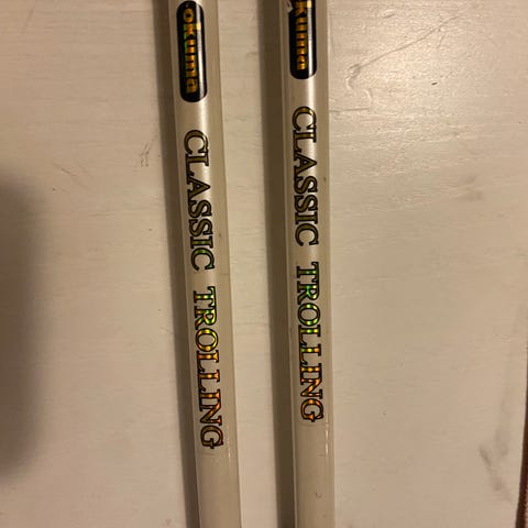 Okänd fiskespö i blå färg, 2-delad konstruktion. Passar för sportfiske och fritidsfiske.