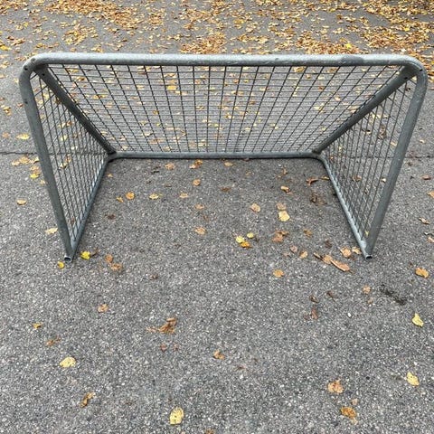 Sportmål med ram och nät, avsett för utomhusbruk. Målet är konstruerat med metallram och nät för att fånga puckar eller bollar vid träning eller spel. Passar för träning och spel i trädgård eller på plan. Jättefint skick och super kul att kunna träna hemma i trädgården året runt!