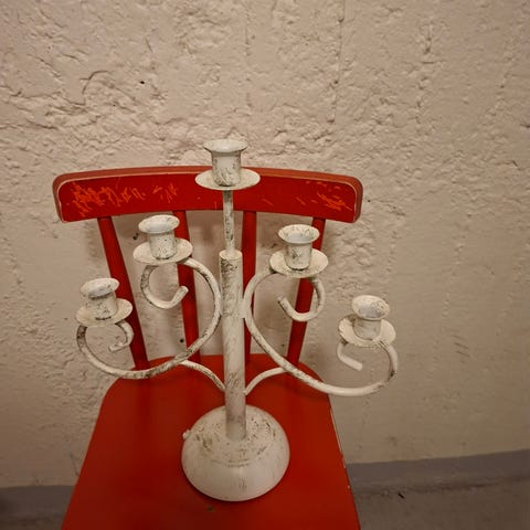 Två ljusstakar i silvergrå färg. Finns två extra lampor som medföljer de båda ljusstakarna (4 totalt). De är i fint skick.