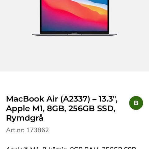 Apple MacBook Air bärbar dator i silverfärg. Inkluderar laddare med lång kabel. Fint chassie, se bilder. Nästan uteslutande använd hemma. 256GB SSD lagring och 4MB RAM.