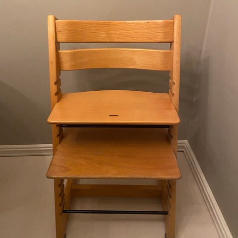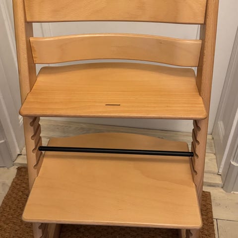 Säljer nu vår klassiska Stokke Tripp Trapp barnstol. Justerbar sits och fotstöd. Färgskav och märken efter vardagligt användande finns men inga sprickor eller defekter i övrigt.