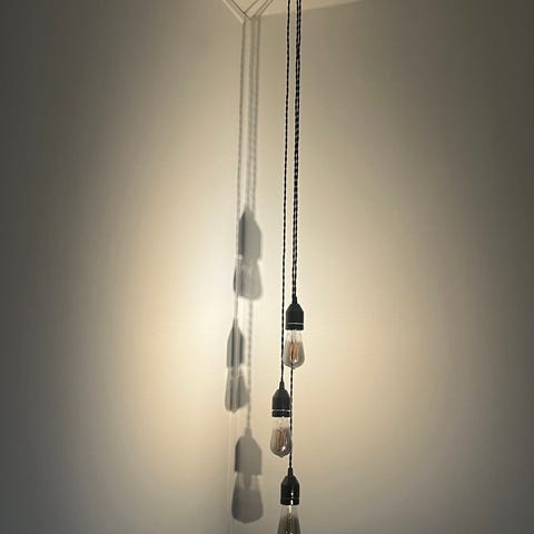 Taklampa - pendellampa med tre lampor i guldfärg. Klotlamporna medföljer.