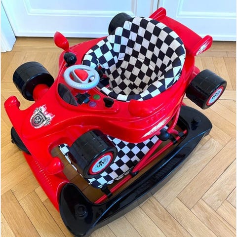 Säljes enligt bilder en gåstol. Perfekt för barn att lära sig gå.