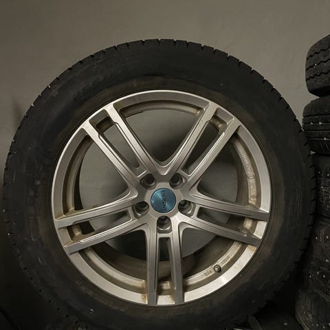 En uppsättning vinterdäck med fälgar i mycket fint skick, inga kantskrap alls och hittar inga andra märken heller.