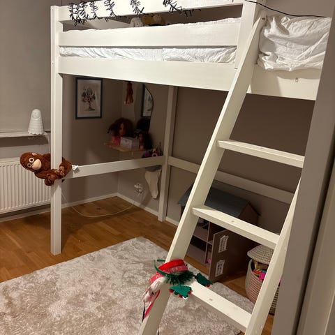Säljer en Oliver Furniture Wood Mini våningssäng låg i vit inklusive två stycken Oliver Furniture Mini madrasser 68x162.