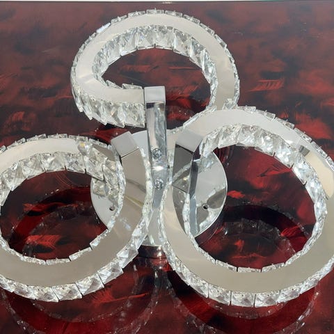 Stora taklampor, en vit plast och en ceriserosa i tyg. Båda med en diameter på ca 50-60 cm. Priset är per lampa, dvs 200kr/st.