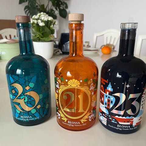 Sökord: Blossa, glögg, flaska, årgång, samlar