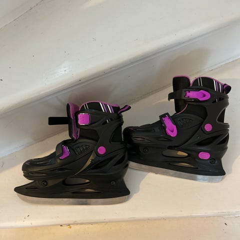 Barnskridskor i rosa färg med storlek 35. Skridskorna har snörning och spänne för justerbar passform. Passar för olika typer av skridskoåkning.