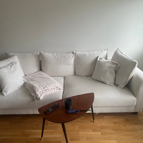 • Finns dock en fläck på baksidan av soffan från ett svart lim som jag försökt få bort, (syns på 3dje bilden), men tycker inte det påverkar utseende om man ställer baksidan mot en vägg.