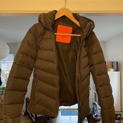 En jättefin Superdry vinterjacka inom sports puffer serien i storlek 36. Den är väldigt väl använd och finns inga tecken på slitage. Jättebra vinterjacka!