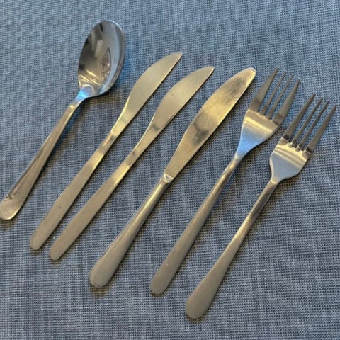 IKEA Bestickset i rostfritt stål som inkluderar gafflar, skedar och knivar. Besticken är designade för vardagligt bruk och har en enkel, modern design.