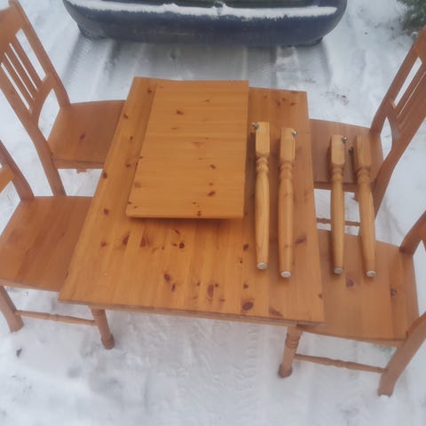 Med i köpet ingår även 2 stolar som saknar stoppad sits. Finns i centrala Kramfors.