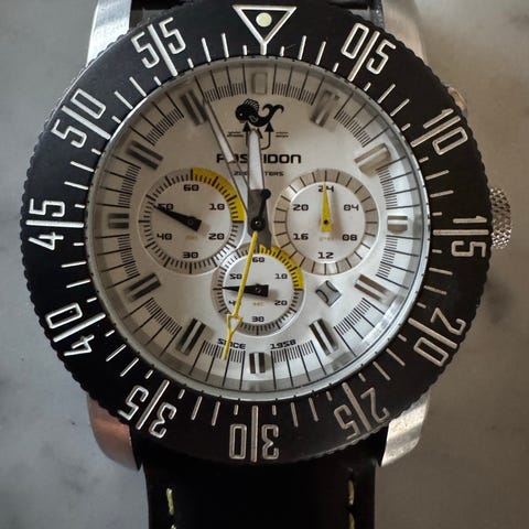 Mekanisk klocka. Håller tiden inom 20-25 sekunder/dygn. Alla funktioner är testade och funkar kanon. Väldigt fint skick, minimala tecken på användning, inga repor på glaset. Ser så gott som ny ut när man har på sig den.