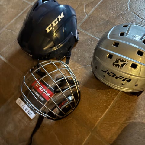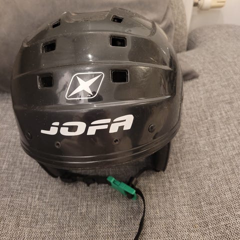 Blå JOFA hockeyhjälm, storlek 49-56. Modellen är 215.