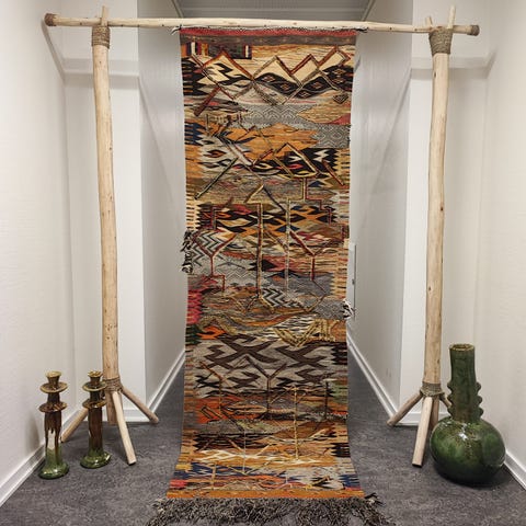 Detta är en äkta one of a kind-matta – du blir den enda i världen som äger just denna. Det finns ingen annan som liknar den, vilket gör den till ett personligt och fullständigt unikt inredningsobjekt med själ och historia.