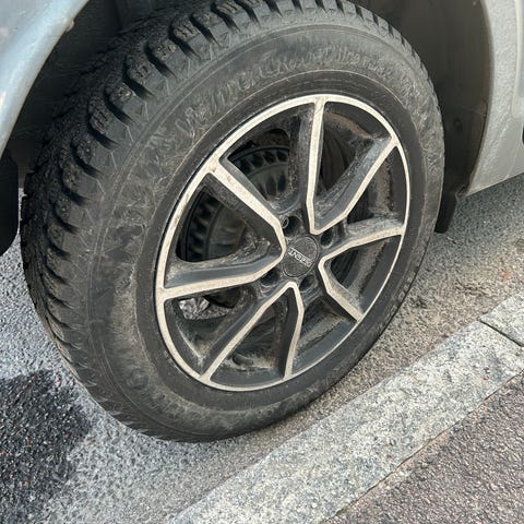 Good year ultra grip I bra skick. De har suttit på en Toyota Aygo, passar säkert fler bilar med samma bultmönster.