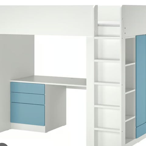 IKEA Loftsäng småstad med skrivbord och hyllor vit