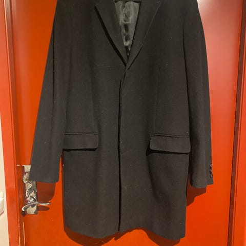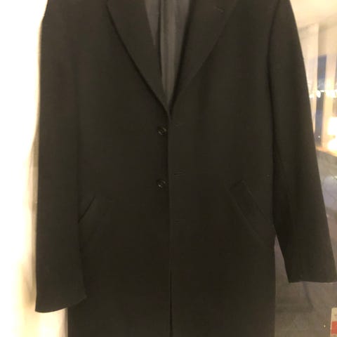 Klassisk svart rock med tre knappar framtill och en elegant krage. Rocken har fickor på sidorna och en stilren design.