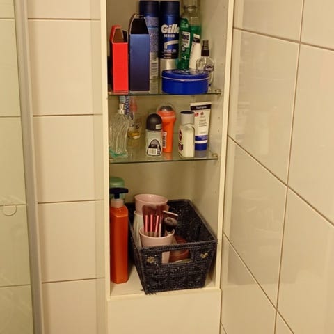 Badrumsmöbel i trä som erbjuder mkt. praktisk förvaring. Ny pris för ca. 2 år sedan 1813,- resp. 1170,-.