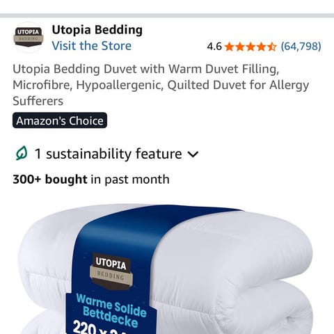 Köpt för ett par månader sedan men efter ett par veckor fick jag en ny säng som är endast 120cm, alldeles för liten för denna duvet!