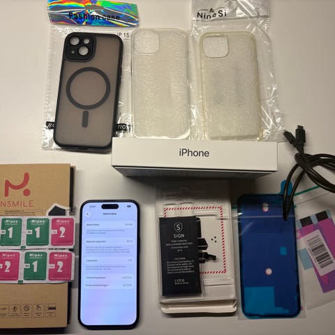 Apple iPhone 15 med 128 GB lagringskapacitet. Svart, olåst. Endast öppnad och startad. dvs oanvänd.