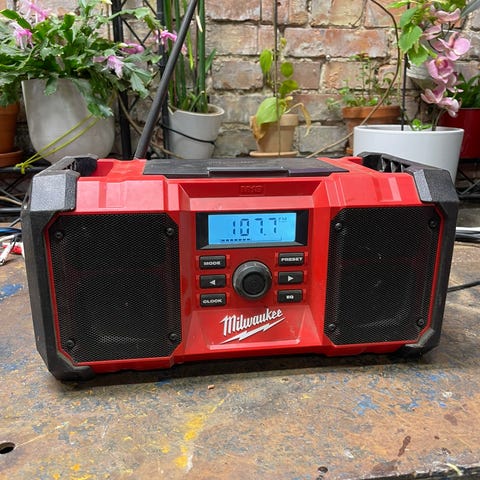Milwaukee arbetsradio med batteriladdare – robust bygg radio