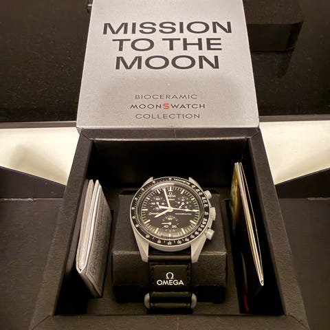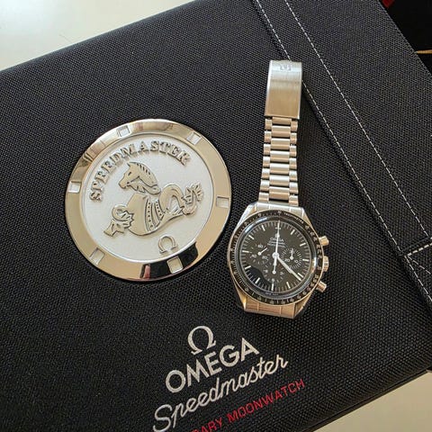Omega speedmaster 1861 hesalite från 2017 i använt skick. Klockan har hairlines och mindre repor som troligtvis kan poleras bort om man så vill. Kommer med det som finns på bilderna. Länken är en aftermarket länk noname. Har inte märkt av någon större tidsavvikelse.