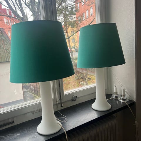 Elen behöver ses över och lampskärmen har en spricka. Modellen är mycket ovanlig. Skickar inte.