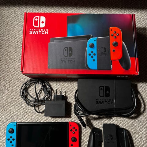 Konsolen är bärbar och kan användas både som handhållen enhet och ansluten till en TV. Inkluderar laddningsdocka, strömadapter och bärväska för transport och förvaring.