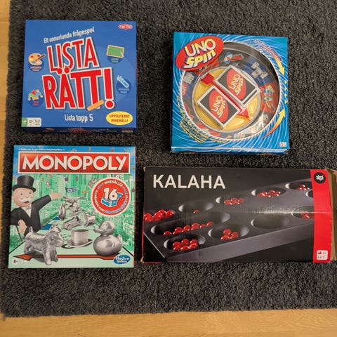 En samling olika brädspel och sällskapsspel med varierande teman och spelstilar. Innehåller spel som Ludo, Monopol, Fauna, Speak Out, Quick & Easy, och flera andra. Spelen är i olika storlekar och för olika antal spelare, lämpliga för familj och vänner.