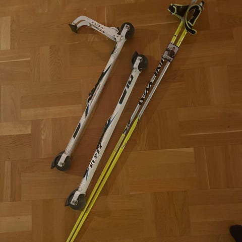 Säljer längdskidor och rullskidor och stavar för att rensa förrådet.