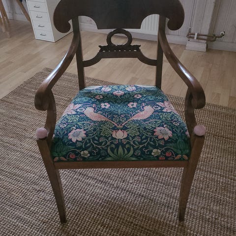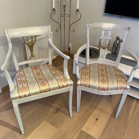 Två fina karmstolar med två fina kuddar till. Ett vackert bord.