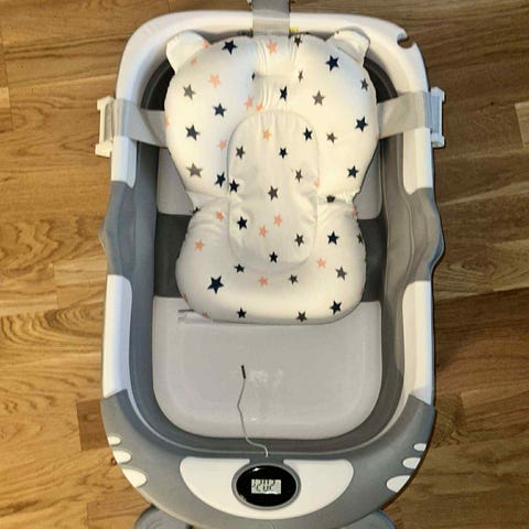 Säljer en hopfällbar babybadbalja/babysimpool, helt ny och oanvänd. Smidig och platsbesparande design som är enkel att fälla upp och ihop. Perfekt för bad hemma, särskilt för små bebisar.