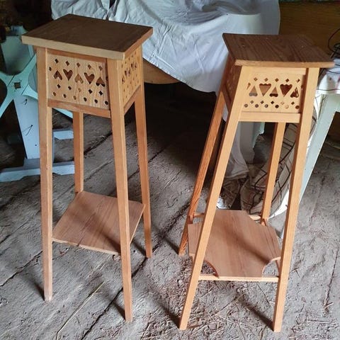 Säljer en stabil och stilren piedestal/blomhylla i svart trä. Tar liten plats men ger höjd – perfekt för växter, krukor, ljus eller dekoration i hall, vardagsrum eller sovrum.