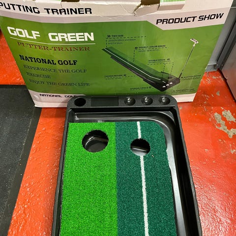 Pelz Golf Putting Tutor träningshjälpmedel för puttning i golf. Produkten levereras i ett svart fodral med dragkedja och innehåller olika delar för puttningsträning.