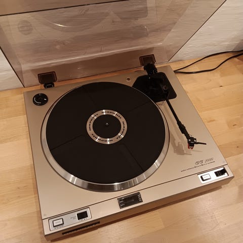 Modern skivspelare med Bluetooth-anslutning för högtalare och hörlurar