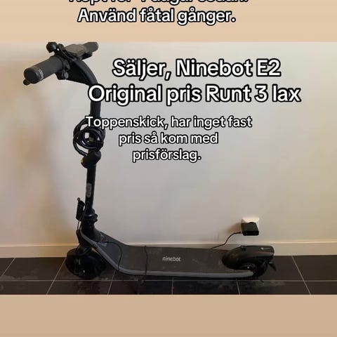 Ninebot elscooter med digital display som visar hastighet och batterinivå. Utrustad med bakljus för ökad synlighet. Svart färg och halkfritt ståbräde. Lämplig för persontransport i stadsmiljö.