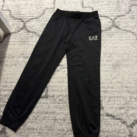 Armani EA7 mjukisbyxor i storlek M, blå färg och tillverkade i bomull. Dessa byxor är designade för män och erbjuder komfort och passform lämplig för vardagligt bruk. Byxorna är äkta, finns qr kod på prislapp